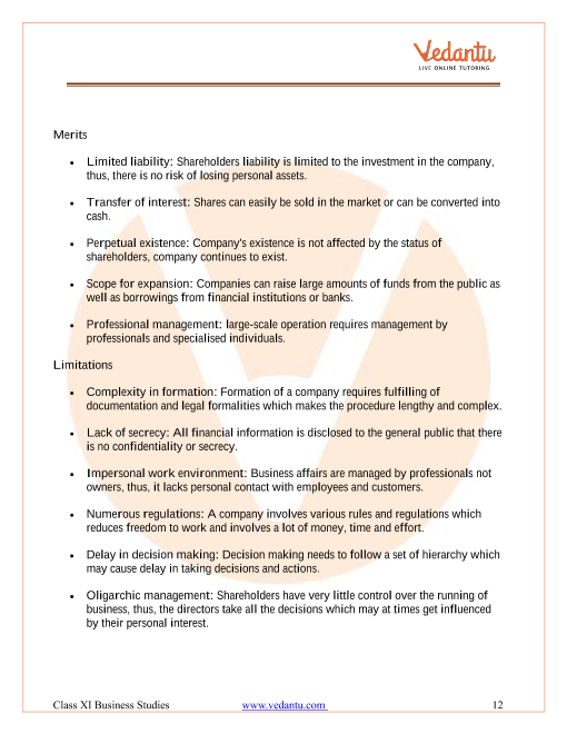 Form Of Business Organisation Class 11 Notes
